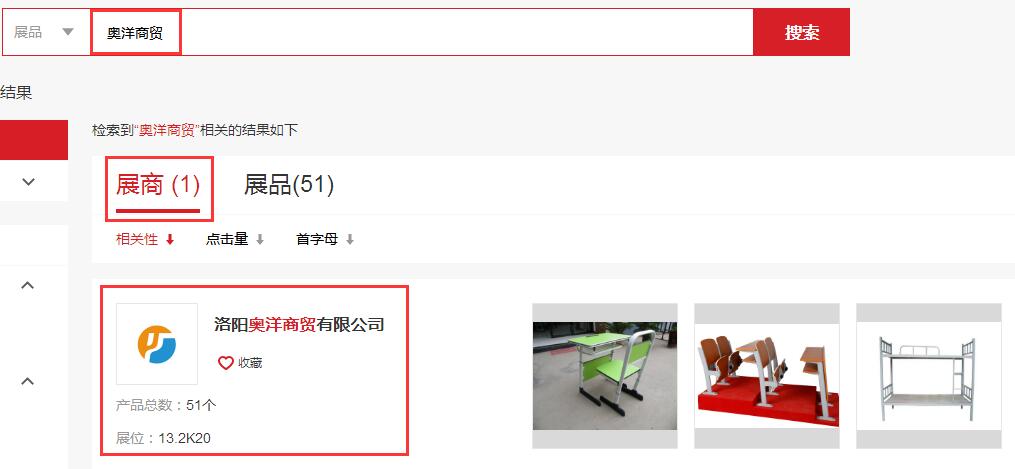 3、選擇展商進(jìn)入洛陽奧洋商貿(mào)有限公司展示頁